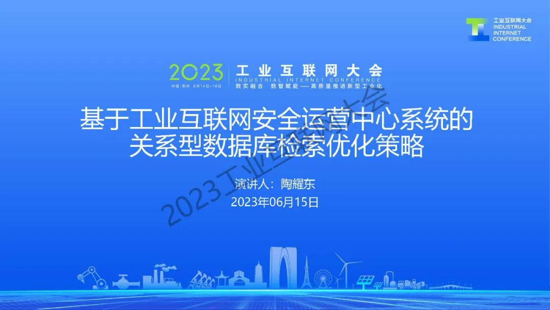 6月15日,在2023工業(yè)互聯(lián)網(wǎng)大會“2022-2023工業(yè)互聯(lián)網(wǎng)學術大會暨中國通信學會第一屆工業(yè)互聯(lián)網(wǎng)委員會第二次全體會議”上,北京雙湃智安科技有限公司首席科學家陶耀東發(fā)表了《基于工業(yè)互聯(lián)網(wǎng)安全運營中心系統(tǒng)的關系型數(shù)據(jù)庫檢索優(yōu)化策略》的主題演講。
