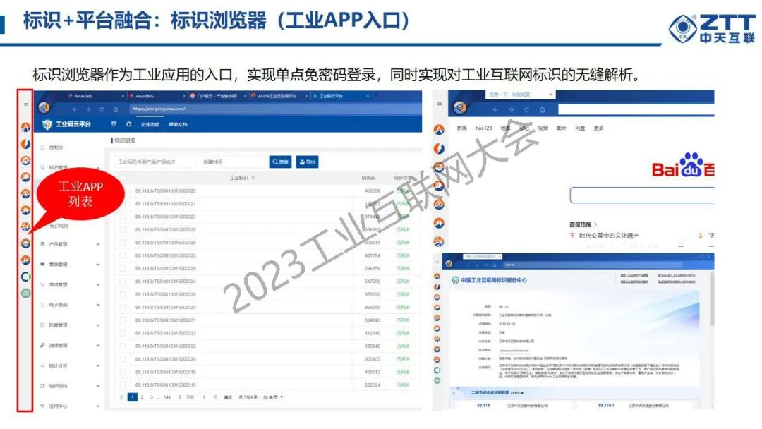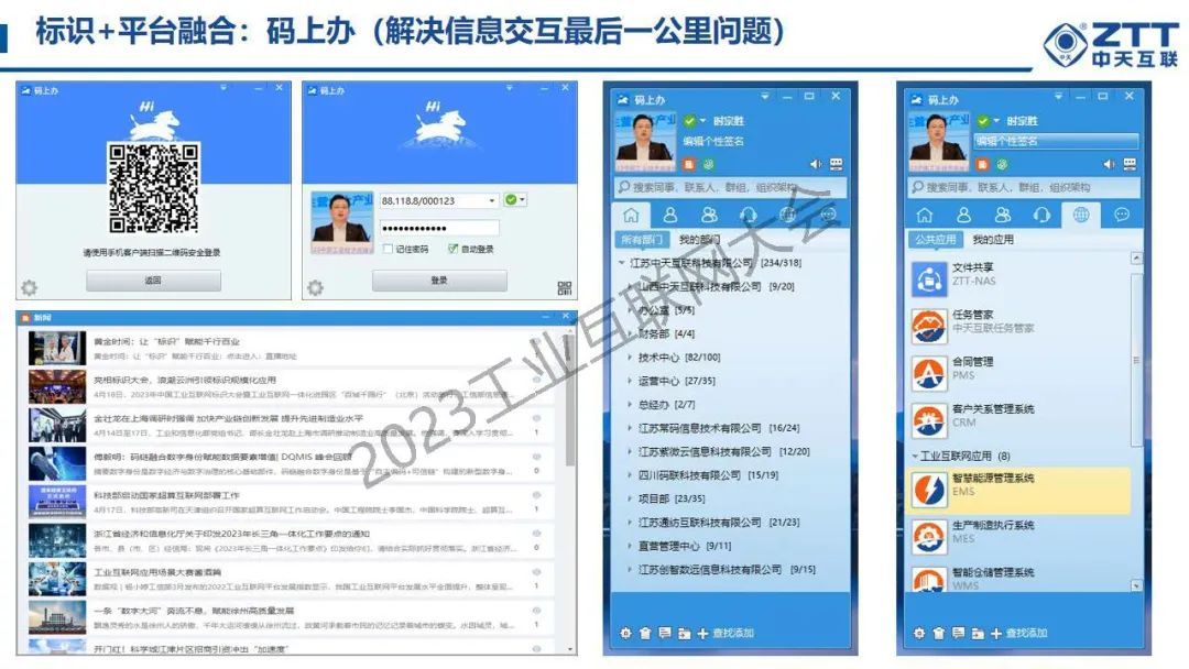 時宗勝指出,平臺內置多行業多領域豐富的工業應用軟件,可集成企業現有信息系統,平臺工業APP深度融合工業互聯網標識,助力企業消滅信息孤島。標識瀏覽器作為工業應用的入口,實現單點免密碼登錄,同時實現對工業互聯網標識的無縫解析。也介紹了中天互聯創新推出的農業農村領域專用碼“農通碼”,是推動鄉村振興重要場景應用,是面向所有涉農要素全生命周期服務的綜合解決方案。