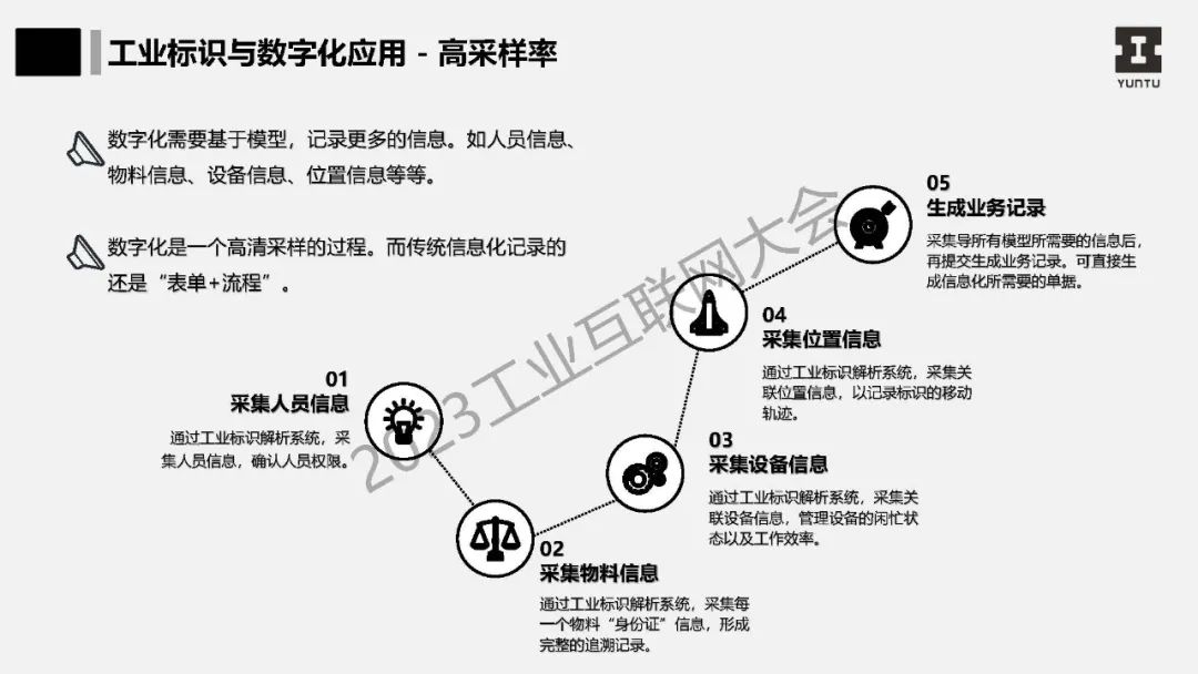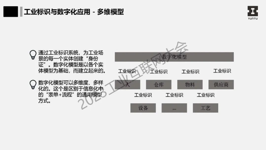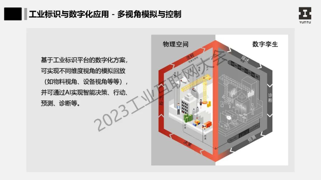 涂若夫介紹了數(shù)字化建設(shè)的3個(gè)要素和5個(gè)特性。他表示通過工業(yè)標(biāo)識系統(tǒng),為工業(yè)場景的每一個(gè)實(shí)體創(chuàng)建“身份證”。數(shù)字化模型是以各個(gè)實(shí)體模型為基礎(chǔ),而建立起來的。數(shù)字化模型可以多維度、多樣化的。這個(gè)是區(qū)別于信息化中的“表單+流程”的通用模型方式。同時(shí),基于工業(yè)標(biāo)識平臺的數(shù)字化方案,可實(shí)現(xiàn)不同維度視角的模擬回放(如物料視角、設(shè)備視角等等),并可通過AI實(shí)現(xiàn)智能決策、行動、預(yù)測、診斷等。