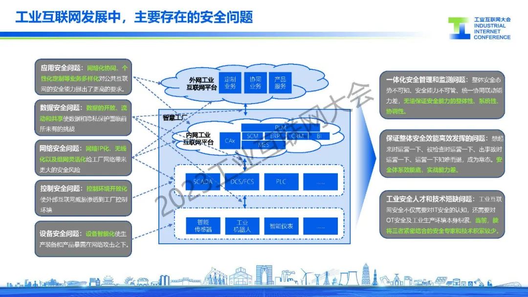 曹東介紹,需要構建安全防護體系、監測體系、處置體系、保障體系,實現最小干擾、深度防護的工業數字化安全。通過打造工業互聯網安全大腦平臺,全面采集工業安全相關數據,實現全網綜合安全態勢分析,精準監測和研判安全風險,策略聯動威脅快速處置,結合云端服務化安全能力保障,實現工業安全可知、可管、可控,以及全網安全監測預警和統一指揮調度。