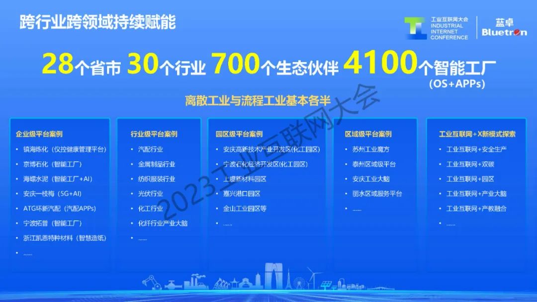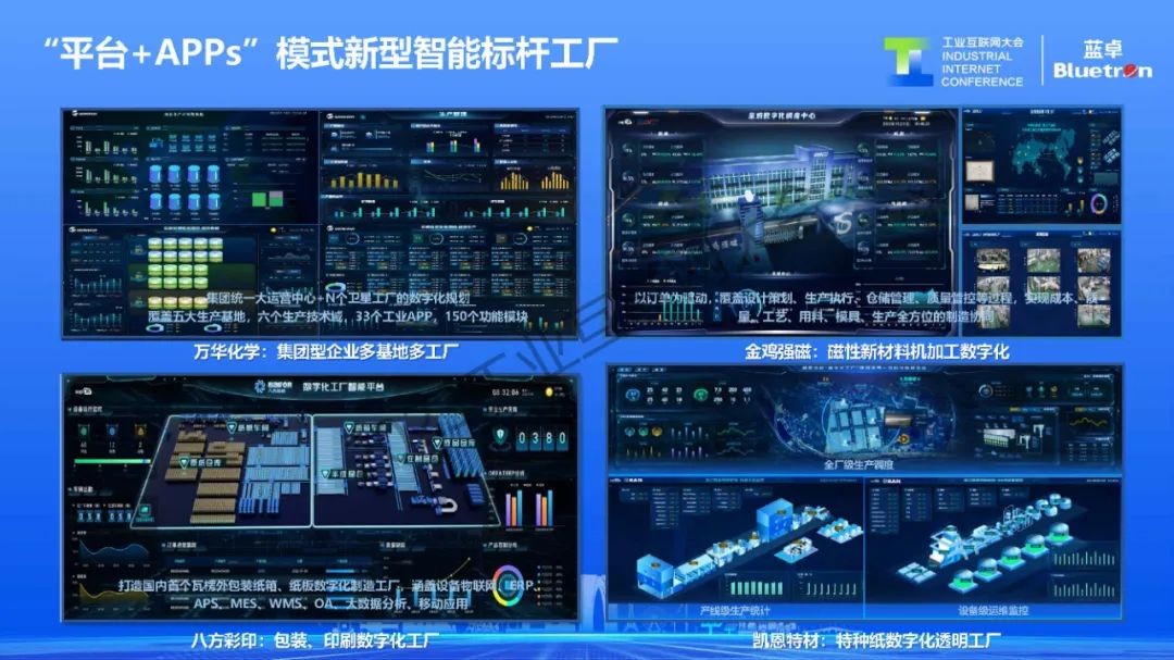 通過“平臺+工業APPs”模式,藍卓已在全球30個行業建設了4100+多個新型智能工廠,包括水泥、石化、化工、建材、冶金、電力等流程行業,以及汽配、裝備制造、金屬加工、電子制造等離散行業。其中,雅戈爾、鎮海煉化、海螺水泥等客戶被評為國家級“數字領航企業”,京博石化、寶麗迪等上榜工信部“工業互聯網平臺創新領航應用案例”。