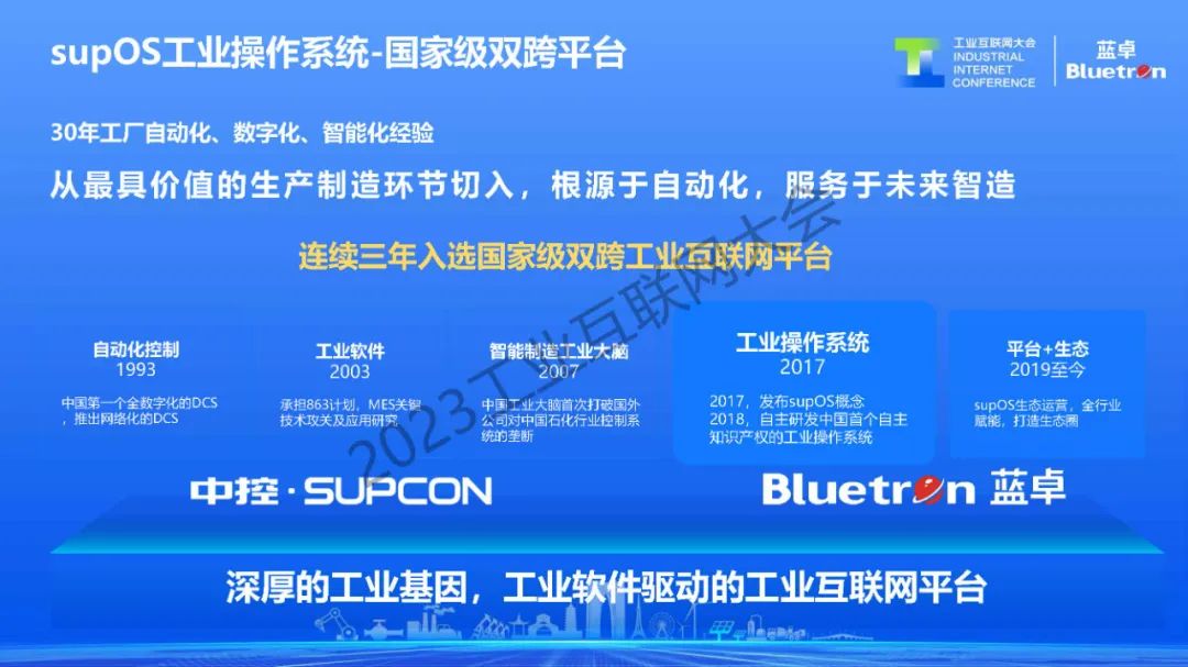 陳挺表示,在充分了解、認識,并且深入一線整理了企業的數字化需求之后,藍卓在2017年推出了國內首個具備自主知識產權的工業操作系統——supOS。