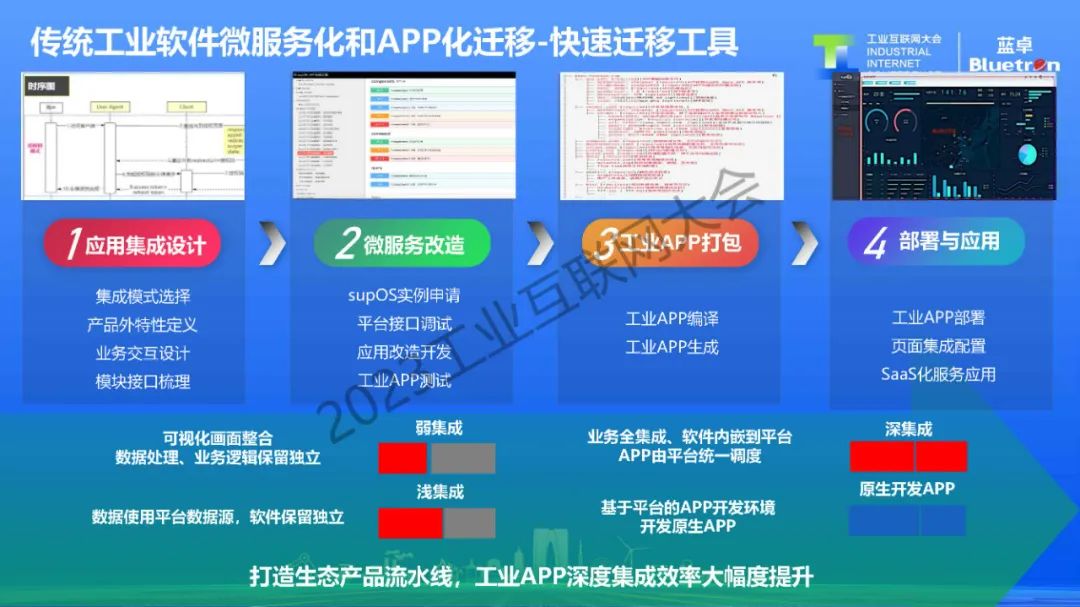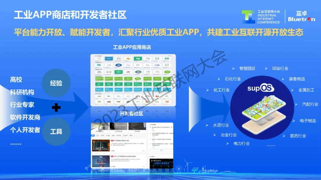 正如手機操作系統離不開應用商店豐富的APP,supOS也需要匯聚大量行業優質的工業APP,目前,藍卓以“平臺+生態”戰略,通過平臺架構逐步開源開放,提供低代碼開發框架、開放開發者社區等形式,不斷吸引平臺運營商、工業軟件開發商、系統服務商、科研機構、工業企業等開發團隊,基于supOS打造豐富的應用生態。