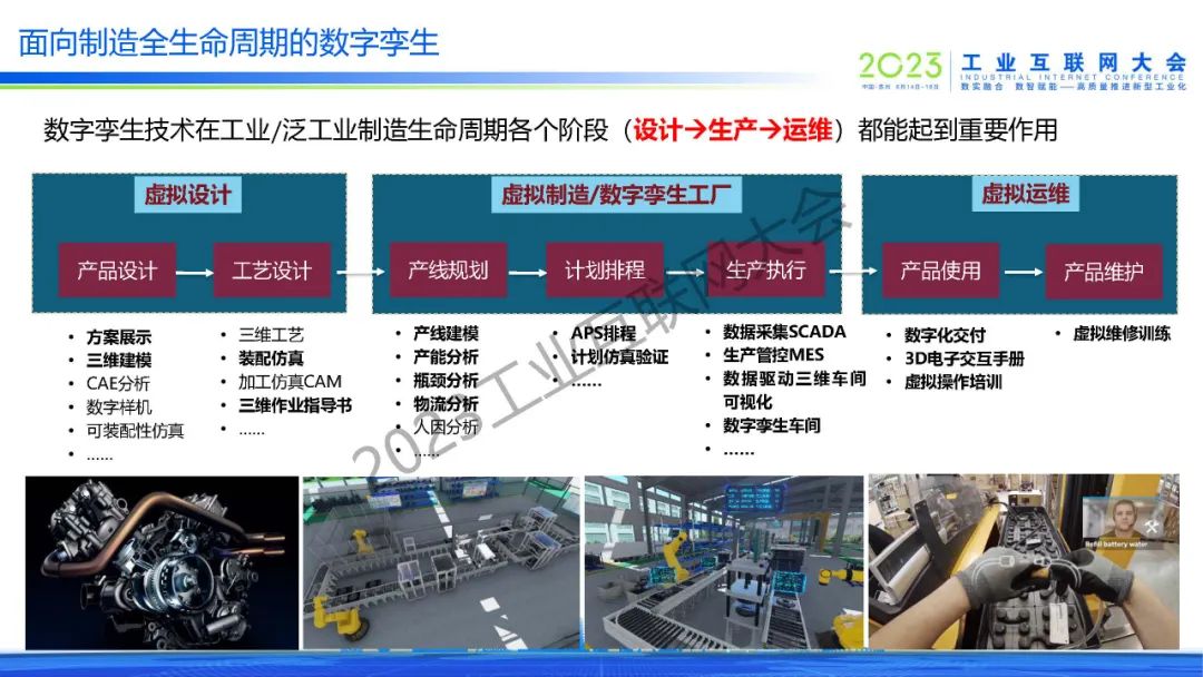 李朝暉表示,數字孿生技術在工業/泛工業制造生命周期各個階段(設計、生產、運維)都能起到重要作用,同時分享了智能工廠、氫能源、國家電網和中國煙草等應用案例。