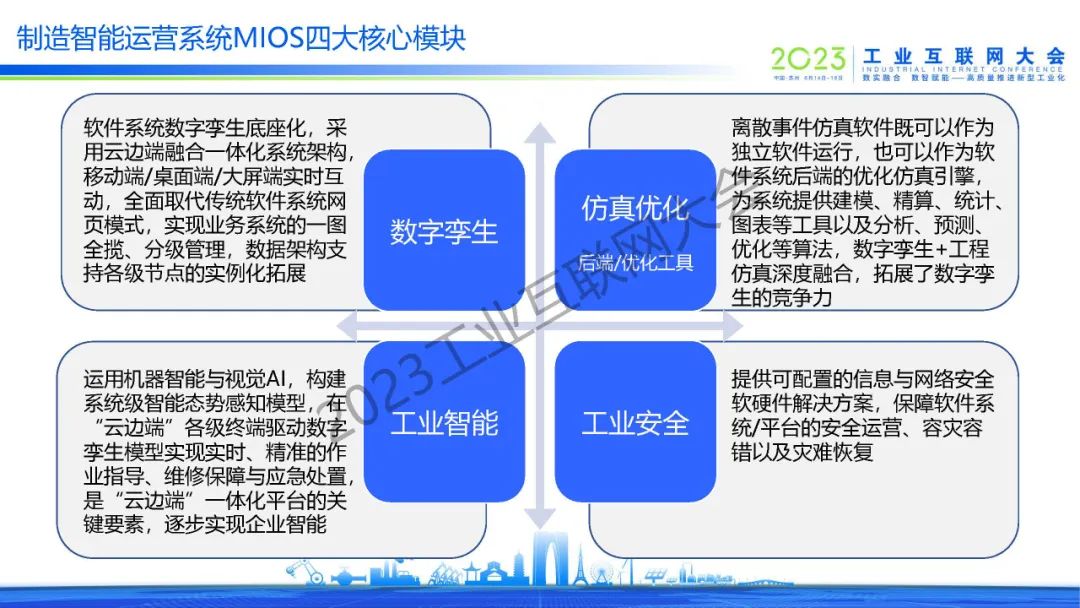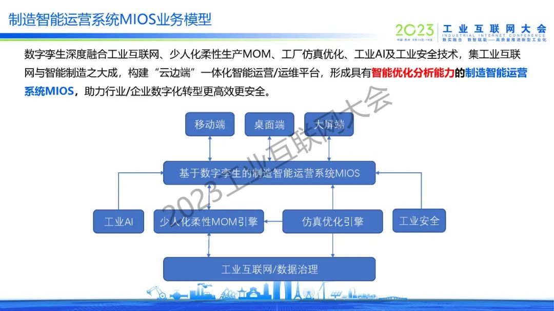 “制造智能運營系統MIOS的理念提出,基于數字孿生底座,深度融合工業互聯網、少人化柔性生產MOM、工廠仿真FS、工業AI及工業安全等關鍵技術,構建“云/邊/端”一體化智能運營/運維平臺。MIOS具有強大的智能分析能力,正在推動工業AI和工廠仿真FS實現從“看見”到“理解”的跨越,使得齊套性預測、智能調度、預測性維護等工作變得可能,助力傳統行業/企業數字化轉型更高效更安全。”