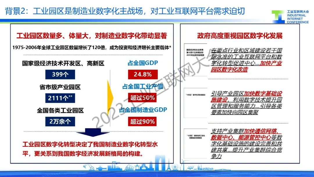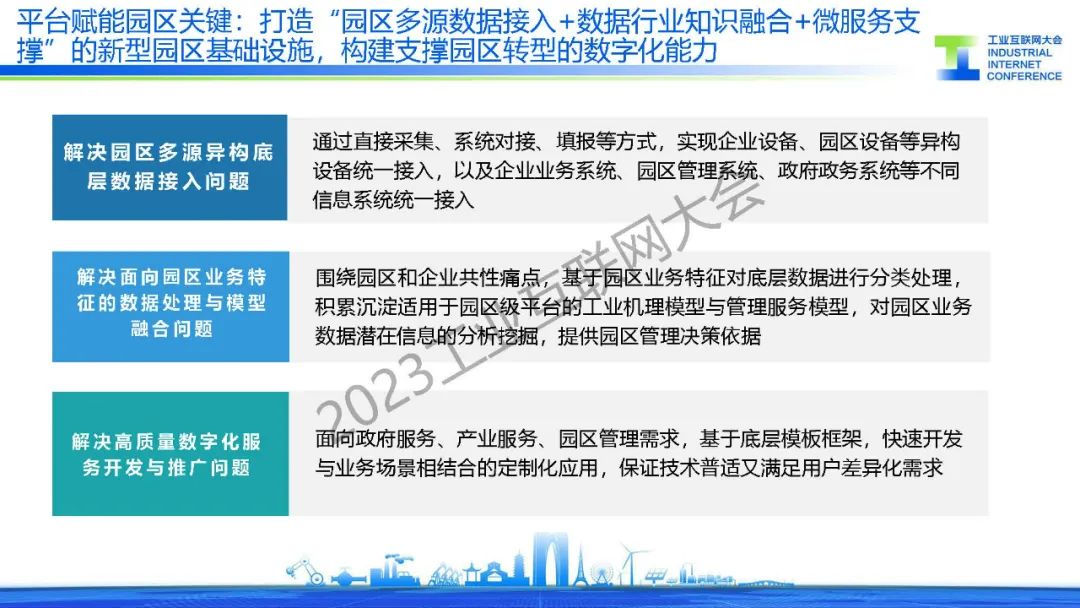 楊昊亭指出,工業互聯網進入應用推廣期形成兩條典型路徑,園區落地成為重要選擇。工業園區是制造業數字化主戰場,對工業互聯網平臺需求迫切。后續平臺賦能園區關鍵是打造“園區多源數據接入+數據行業知識融合+微服務支撐”的新型園區基礎設施,構建支撐園區轉型的數字化能力。
