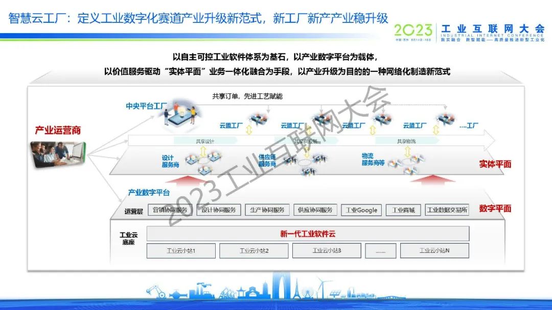 “智慧云工廠以自主可控工業(yè)軟件體系為基石,以產(chǎn)業(yè)數(shù)字平臺為載體,以價值服務驅(qū)動“實體平面”業(yè)務一體化融合為手段,以產(chǎn)業(yè)升級為目的的一種網(wǎng)絡化制造新范式。“