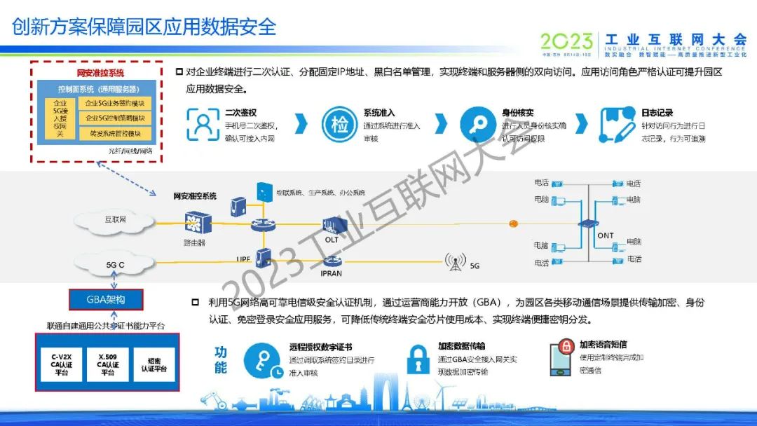 “利用5G網絡高可靠電信級安全認證機制,通過運營商能力開放(GBA),為園區各類移動通信場景提供傳輸加密、身份認證、免密登錄安全應用服務,可降低傳統終端安全芯片使用成本、實現終端便捷密鑰分發。“