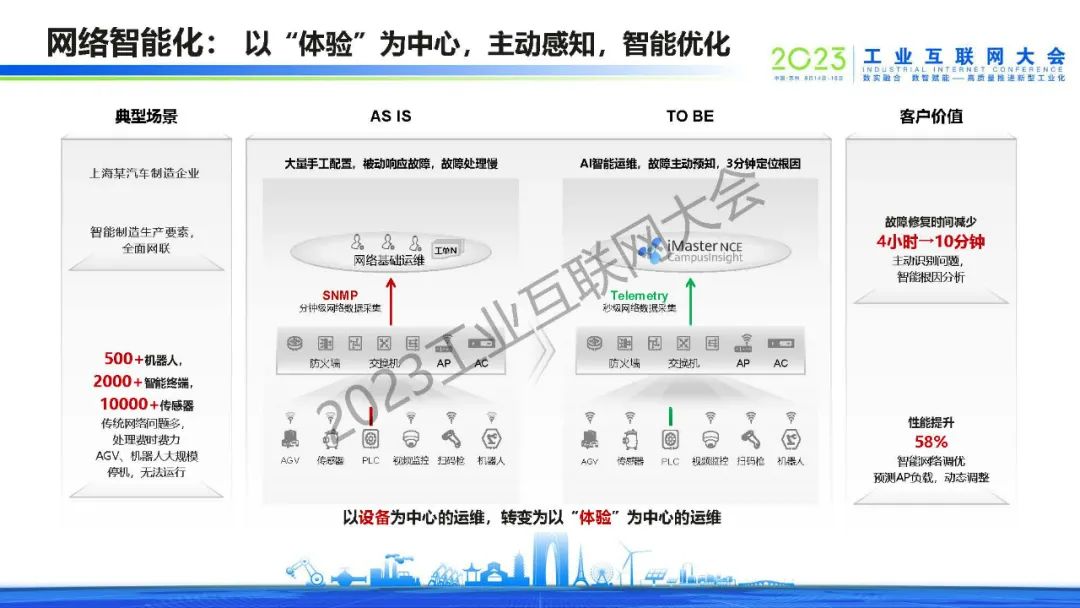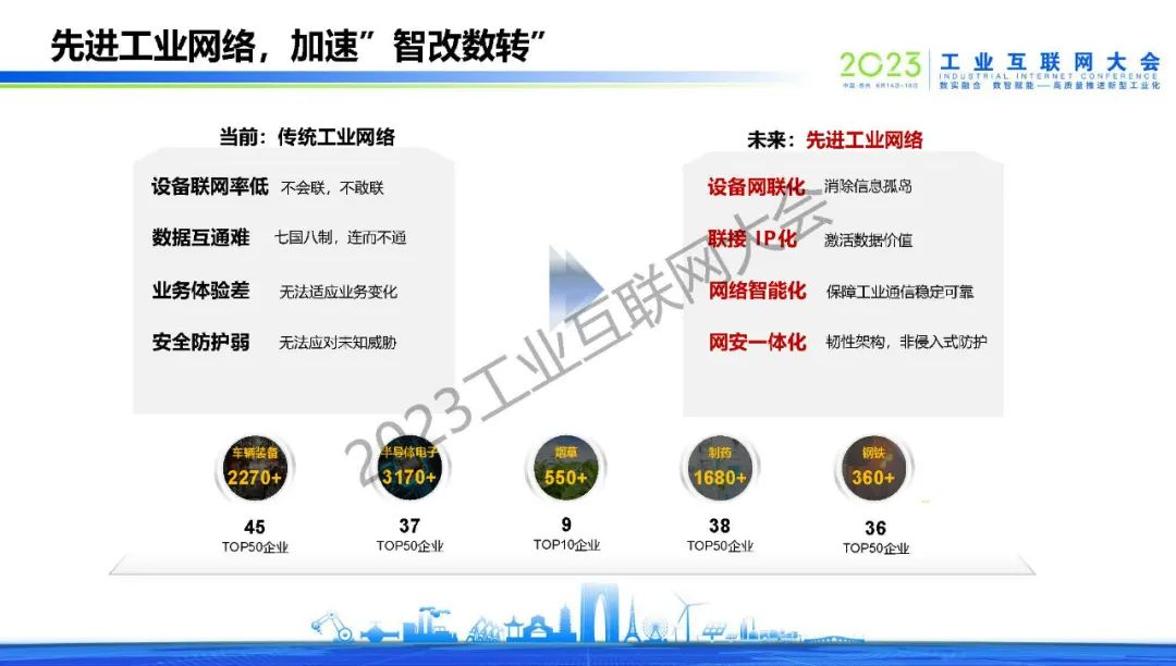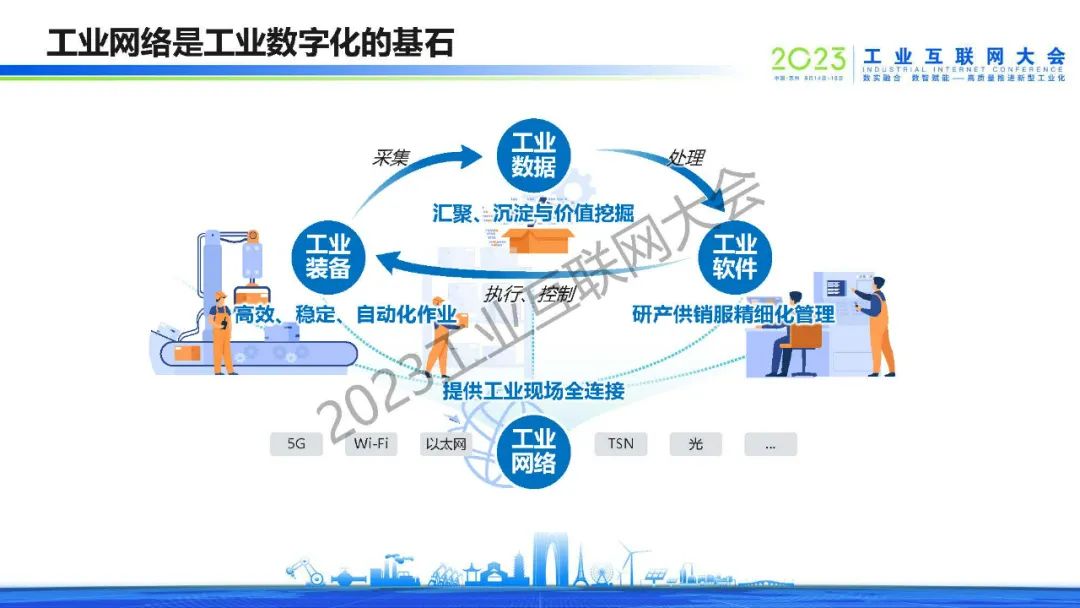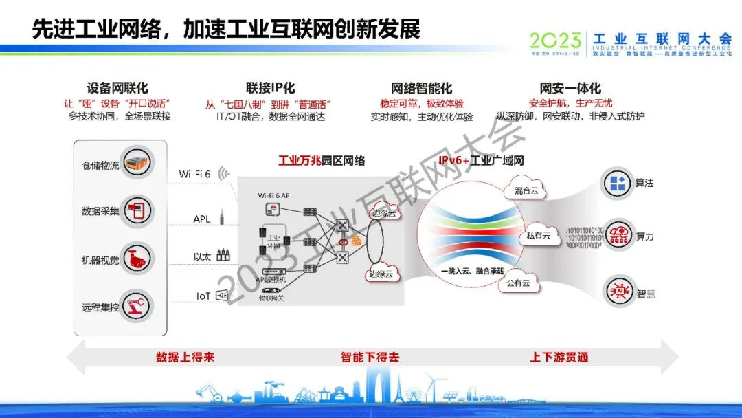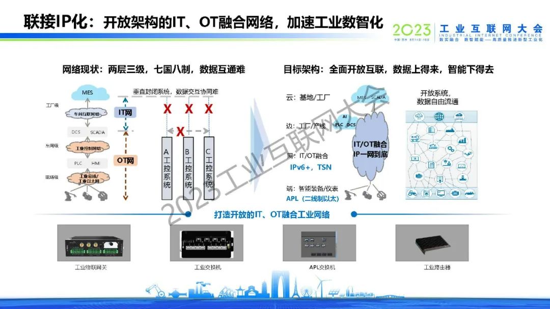 唐新兵表示,工業網絡是工業數字化的基石。先進工業網絡通過設備網聯化、聯接IP化、網絡智能化和網安一體化來加速”智改數轉”,加速工業互聯網創新發展。