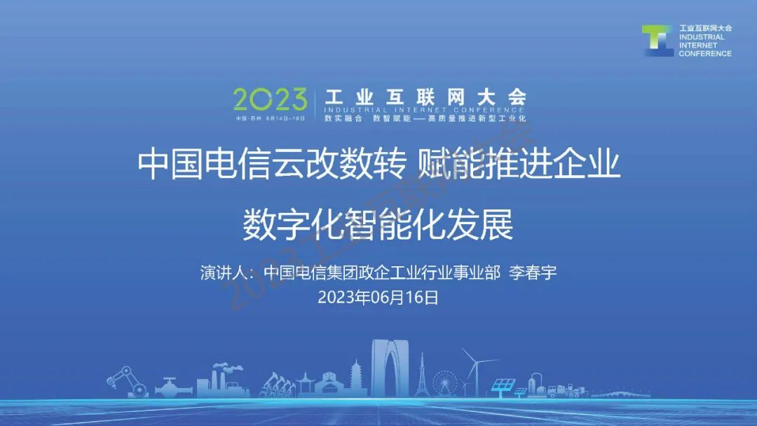 6月16日,在2023工業互聯網大會“‘5G+工業互聯網’融合發展高端論壇”上,中國電信集團政企信息服務事業群工業行業事業部副總裁李春宇發表了《中國電信云改數轉 賦能推進企業數字化智能化發展》的主題演講。