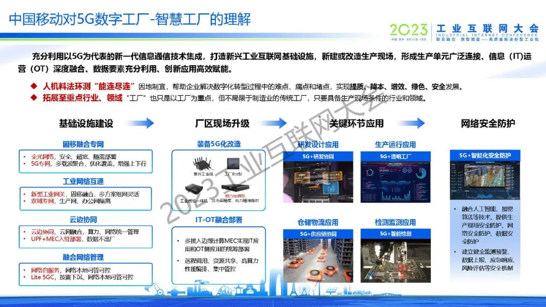 “智慧工廠是充分利用以5G為代表的新一代信息通信技術(shù)集成,打造新興工業(yè)互聯(lián)網(wǎng)基礎(chǔ)設(shè)施,新建或改造生產(chǎn)現(xiàn)場,形成生產(chǎn)單元廣泛連接、信息(IT)運營(OT)深度融合、數(shù)據(jù)要素充分利用、創(chuàng)新應(yīng)用高效賦能。。”
