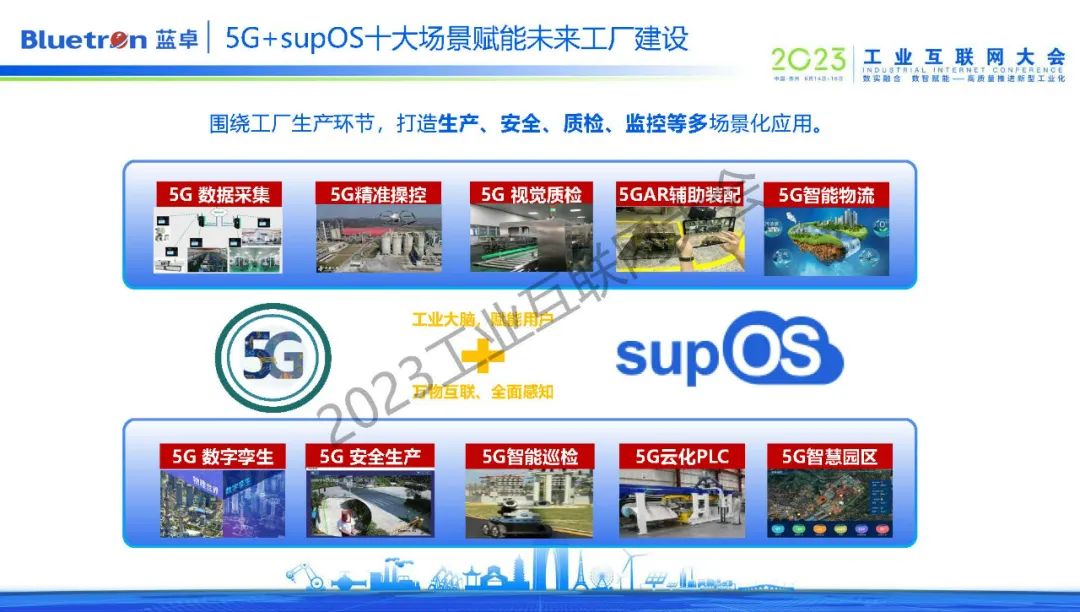 為加速企業(yè)完成生產制造自動化和經營管理自動化,從而走向未來工廠,藍卓不斷探索supOS工業(yè)操作系統(tǒng)與前沿技術的的創(chuàng)新融合,而5G技術為工業(yè)操作系統(tǒng)提供了更多元化的賦能手段和想象空間。目前,supOS圍繞生產、安全、質檢、監(jiān)控等領域,打造了5G+數(shù)字孿生、5G+安全生產、5G+智能巡檢、5G+云化PLC等數(shù)十種場景化應用。