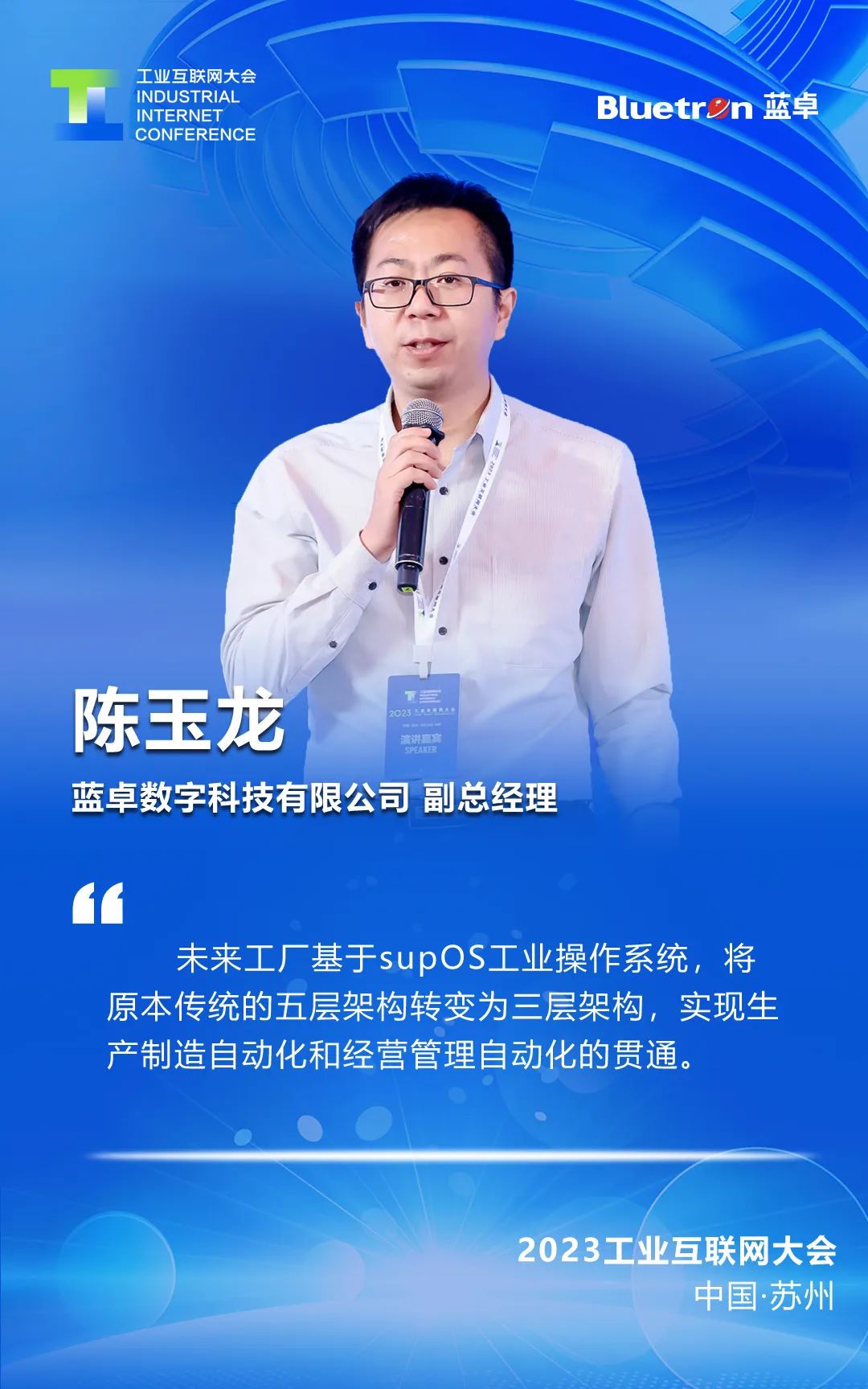 6月15日,在2023工業(yè)互聯(lián)網大會“5G+工業(yè)互聯(lián)網”融合發(fā)展高端論壇上,藍卓數(shù)字科技有限公司副總經理陳玉龍從工業(yè)操作系統(tǒng)+5G融合應用的角度,介紹了傳統(tǒng)工廠走向未來工廠的建設思路。