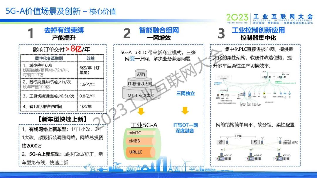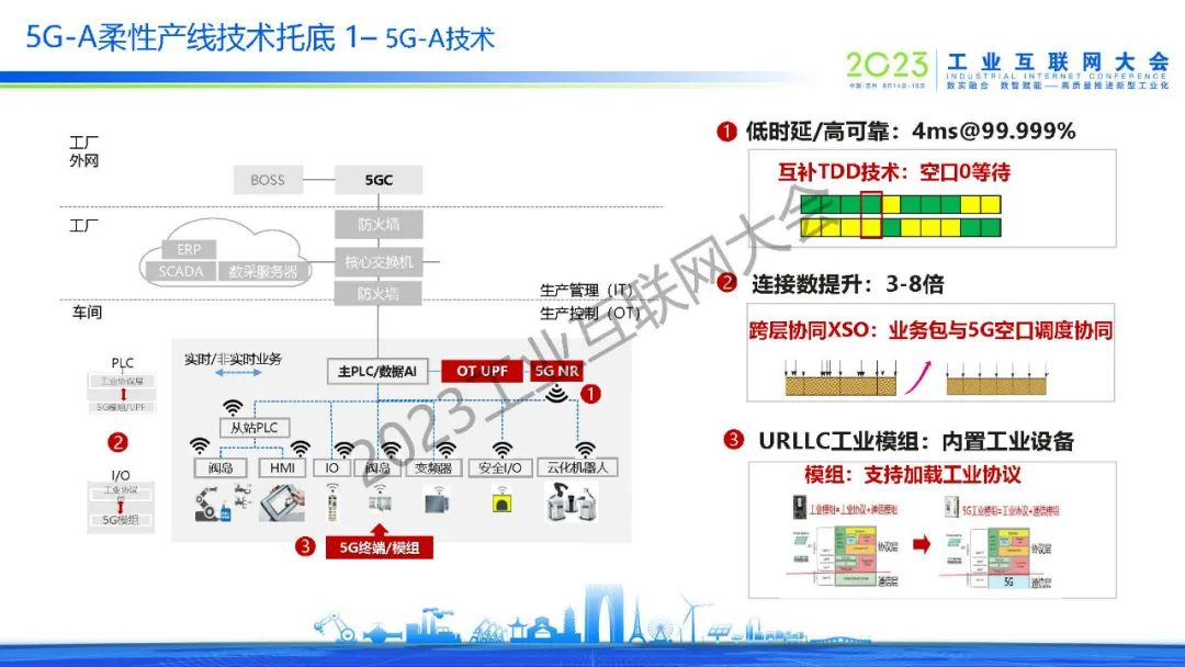 “基于5G-A URLLC 模組加載Profinet工業協議,OT和5G網感知協同(XSO),成功實現了5G技術向生產核心層下探?!?/p>