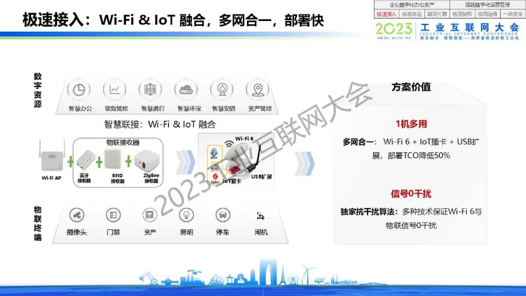 程劍表示,產(chǎn)業(yè)園區(qū)正進(jìn)入智慧化4.0時代,園區(qū)ICT基礎(chǔ)設(shè)施正進(jìn)入集約化建設(shè)模式,企業(yè)數(shù)字化正在從辦公場景延伸到生產(chǎn)場景。企業(yè)數(shù)字化辦公生產(chǎn)需要做到極速接入,極致體驗和超高可靠。園區(qū)數(shù)字化運(yùn)營管理需要做到極簡架構(gòu),極簡運(yùn)維和一體安全。