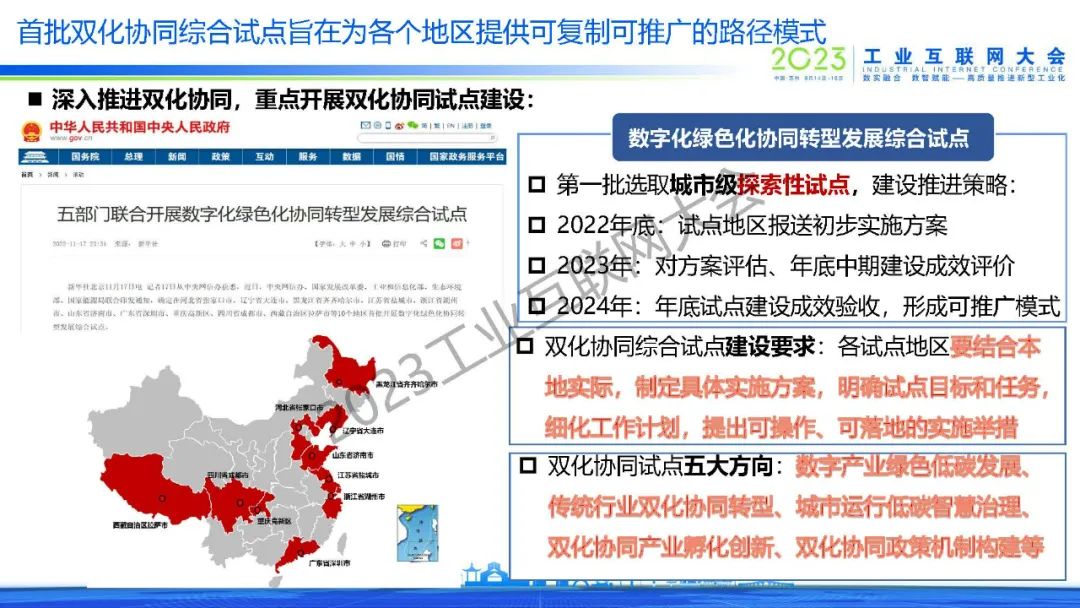 徐志發指出,雙化協同是指數字化與綠色化兩大戰略相互協同、相互促進,以數字化引領綠色化,在數字化轉型中同步實現綠色化,以綠色化帶動數字化,在綠色化轉型中充分發揮數字化賦能作用,大力發展綠色數字融合新技術,培育綠色數字產業新生態,助力實現碳達峰碳中和目標,形成經濟社會綠色高質量發展新格局,為世界提供數字化賦能綠色化發展的中國方案和中國智慧。