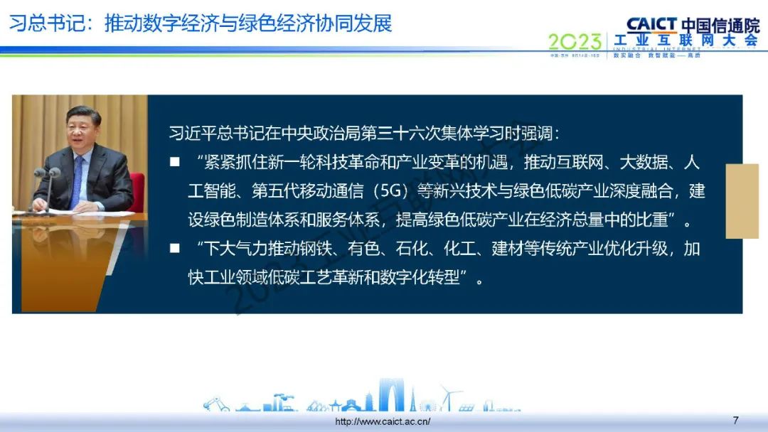 6月16日,在2023工業互聯網大會“數字助力碳達峰碳中和高端論壇”上,中國信息通信研究院產業與規劃研究所所長、碳達峰碳中和發展中心主任徐志發發表了《數字化綠色化協同轉型的洞察與思考》的主旨演講。