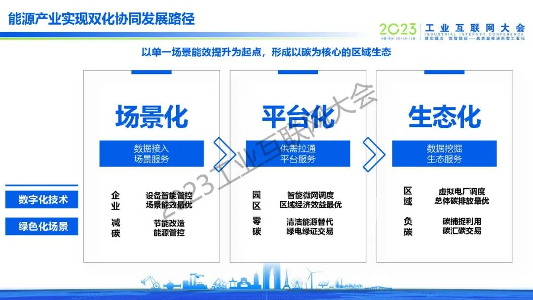 “雙化協同發展應該是從企業自身場景落地場景看,隨著市場機制的逐漸完善包括技術進步,在大的區域內實現碳的資源優化配置,最終實現雙化協同的長期愿景。隨著資源配置的區域逐漸擴大,區域內場景逐漸豐富,平臺匯聚的數據量越來越多,對云計算、大數據、人工智能等數字化技術的有更高需求來實現場景綠色化。”