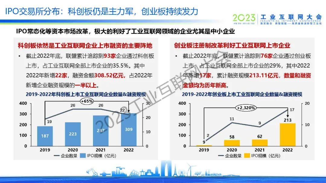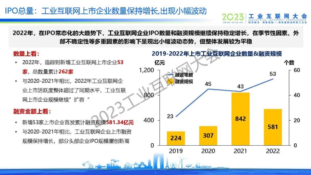 肖榮美指出,2022年工業互聯網企業的IPO數量和融資規模整體保持穩定增長,在季節性因素、外部不確定性等多重因素的影響下呈現出小幅波動態勢。受宏觀經濟波動影響,2022年我國創投整體的景氣水平不如預期,工業互聯網作為“硬科技”的主要賽道之一也受到波及。2023年工業互聯網有望進入新的增長周期,在資本的助力下行業的規模化發展將進一步加速。