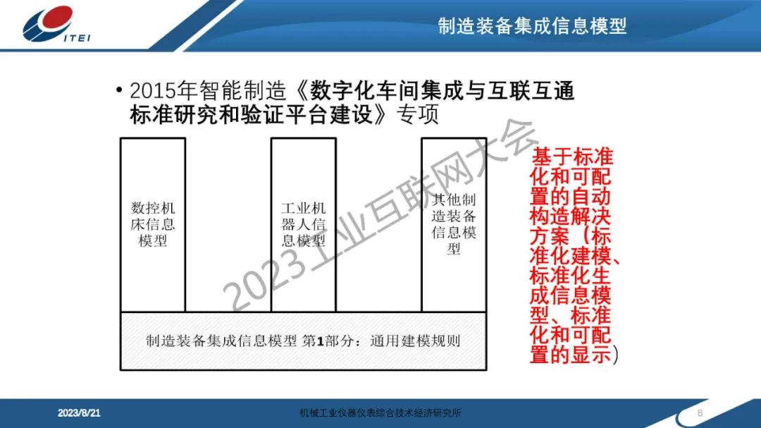 6月14日,在2023工業互聯網大會“工業互聯網信息模型發展論壇”上,機械工業儀器儀表綜合技術經濟研究所傳感與網絡中心副主任趙艷領發表了《制造裝備信息模型實踐分享》的主題演講。