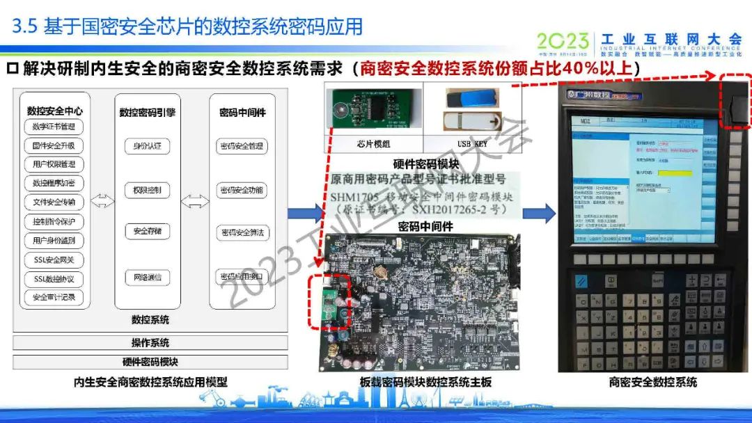6月14日,在2023工業互聯網大會“工業互聯網密碼創新應用論壇”上,廣州數控設備有限公司密碼技術負責人陳劍飛發表了《密碼技術在數控系統中的應用》的主題演講。
