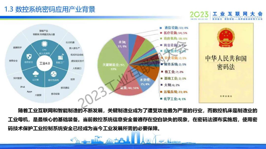 陳劍飛表示,關鍵制造業成為了遭受攻擊最為嚴重的行業,而數控機床是制造業的工業母機,是最核心的基礎裝備。當前數控系統信息安全普遍存在空白缺失的現象,在密碼法頒布實施后,使用密碼技術保護工業控制系統安全已經成為當今工業發展所需的必要保障。