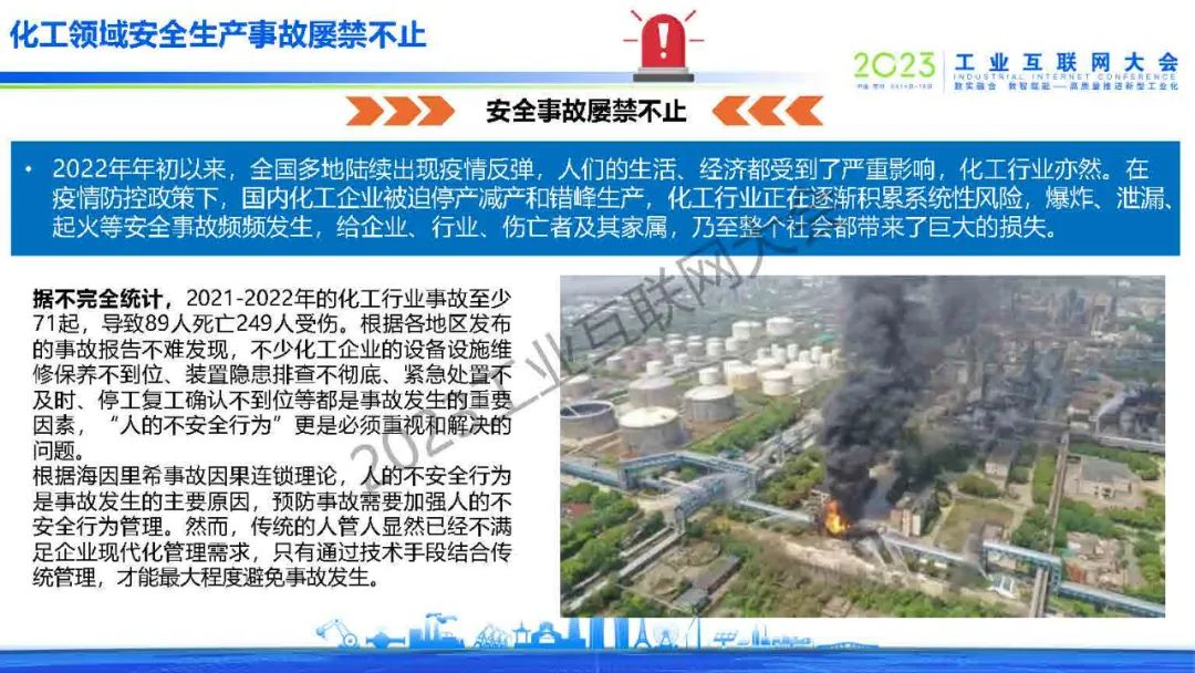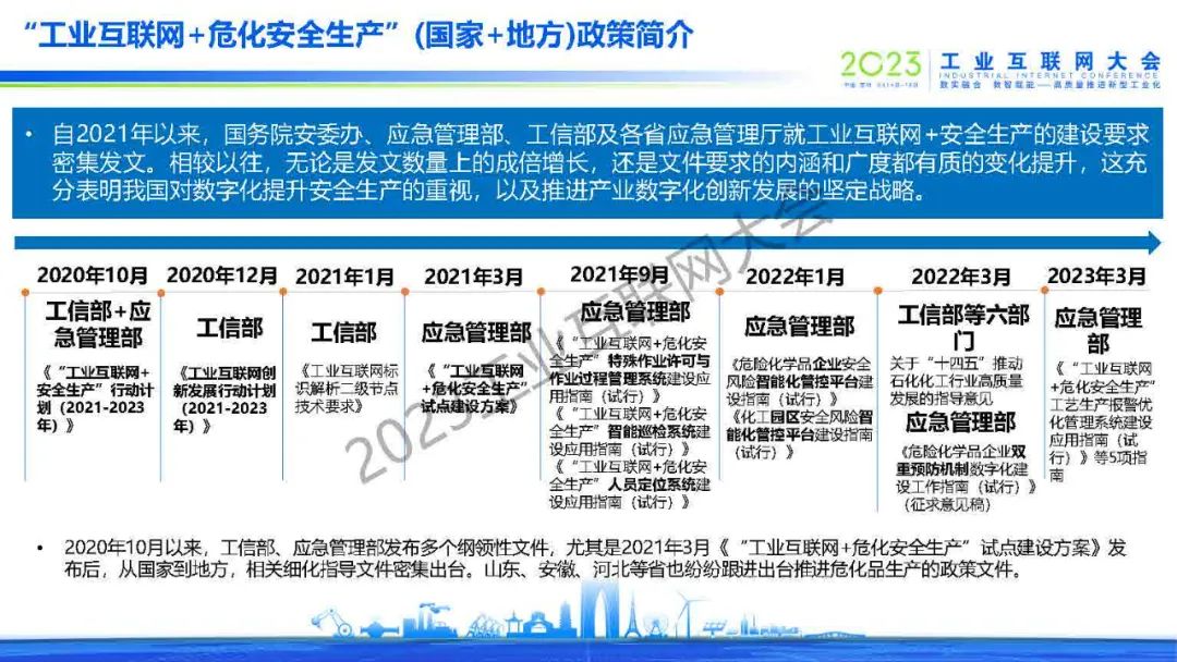 6月15日,在2023工業互聯網大會“工業互聯網+危化安全生產數字化轉型論壇”上,中國信息通信研究院泰爾終端實驗室戰略部業務主管/高級工程師朱玥發表了《“工業互聯網+危化安全生產”評估體系構建》的主題演講。