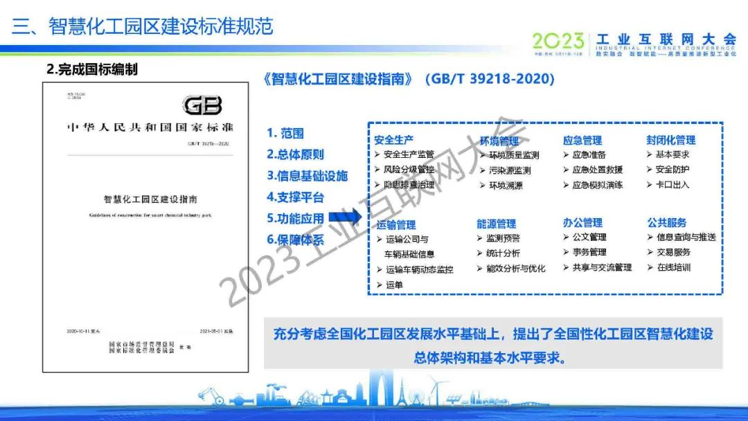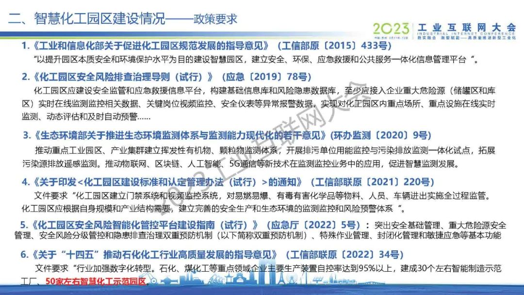 6月15日,在2023工業(yè)互聯(lián)網(wǎng)大會“工業(yè)互聯(lián)網(wǎng)+?;踩a(chǎn)數(shù)字化轉(zhuǎn)型論壇”上,中國石油和化學(xué)工業(yè)聯(lián)合會化工園區(qū)工作委員會處長馬從越發(fā)表了《智慧化工園區(qū)建設(shè)進展與應(yīng)用實踐》的主題演講。