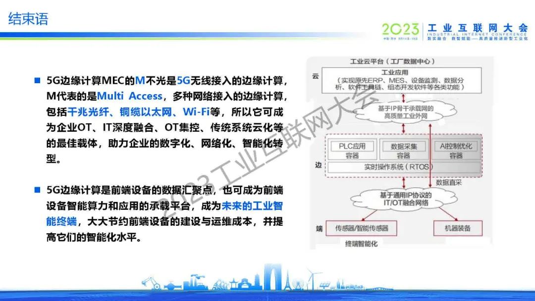范濟(jì)安表示,5G邊緣計算MEC的M不光是5G無線接入的邊緣計算,M代表的是Multi Access,多種網(wǎng)絡(luò)接入的邊緣計算,包括千兆光纖、銅纜以太網(wǎng)、Wi-Fi等,所以它可成為企業(yè)OT、IT深度融合、OT集控、傳統(tǒng)系統(tǒng)云化等的最佳載體,助力企業(yè)的數(shù)字化、網(wǎng)絡(luò)化、智能化轉(zhuǎn)型。