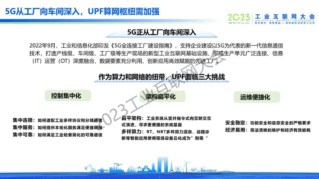 “5G+工業(yè)互聯(lián)網(wǎng)從輔助生產(chǎn)向融入生產(chǎn)邁進的過程中,UPF作為5G網(wǎng)絡(luò)與工業(yè)網(wǎng)絡(luò)互通的紐帶,需解決控制集中化、架構(gòu)扁平化、運維便捷化的新需求,從而使能5G與工業(yè)互聯(lián)網(wǎng)的邊緣算網(wǎng)融合。“