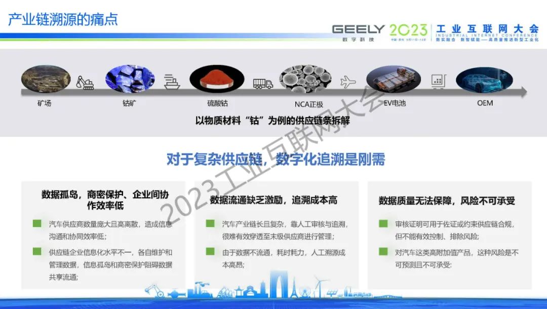6月16日,在2023工業(yè)互聯(lián)網(wǎng)大會“工業(yè)互聯(lián)網(wǎng)+區(qū)塊鏈創(chuàng)新發(fā)展論壇”上,無錫吉利數(shù)字科技有限公司產(chǎn)品總監(jiān)賽磊發(fā)表了《基于區(qū)塊鏈的工業(yè)互聯(lián)網(wǎng)產(chǎn)業(yè)供應(yīng)鏈溯源云平臺實踐》的主題演講。