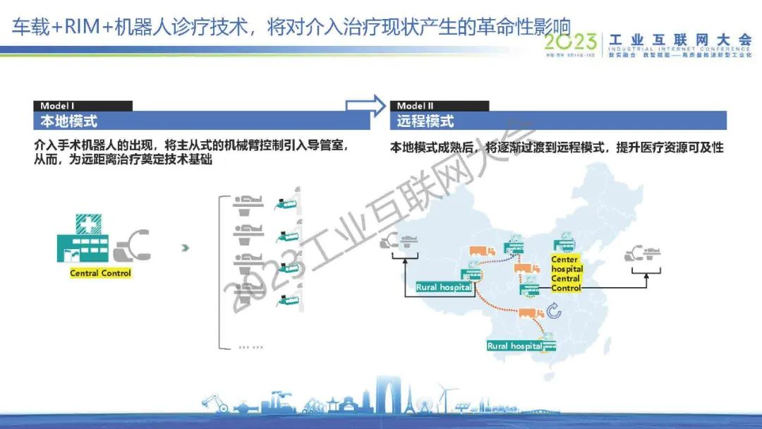 “手術機器人可以通過機械臂的方式,醫生可以離比較遠的位置去遠程操控機械臂進行手術。這個不光是限于介入,包括像外科、腔鏡、骨科,還有非常完整的網絡環境,包括像5G和光纖的有線的環境,有非常多不同的組網方式。”