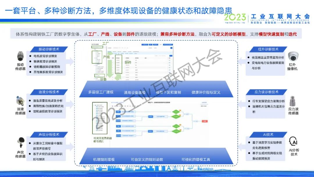 潘惠梅介紹,工業互聯網為鋼鐵企業設備管理帶來新技術、新理念和新模式。體系性構建鋼鐵工廠的數字孿生體,從工廠、產線、設備到部件的逐級建模;兼容多種診斷方法,融合為可定義的診斷模型,支持模型快速復制和迭代。朗坤蘇暢工業互聯網平臺基于“機理+AI”相結合的模型,實現故障預警和自診斷,打通故障智能預警和設備檢修流程,實現鋼鐵產線設備狀態檢修。