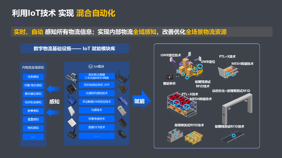 供應(yīng)鏈資源數(shù)字化。部署實施用于精準(zhǔn)定位、過程追蹤、信息感知等場景的IoT智能硬件與裝備。主要包括超高頻RFID模塊與技術(shù)、無線Mesh網(wǎng)絡(luò)模塊與技術(shù)、高精度UWB定位模塊與技術(shù),并應(yīng)用以上技術(shù)和智能硬件模塊,實現(xiàn)內(nèi)部供應(yīng)鏈系統(tǒng)資源全要素數(shù)字化升級改造,完成內(nèi)部供應(yīng)鏈系統(tǒng)IoT數(shù)字化場景賦能,建立供應(yīng)鏈動態(tài)資源“池”。