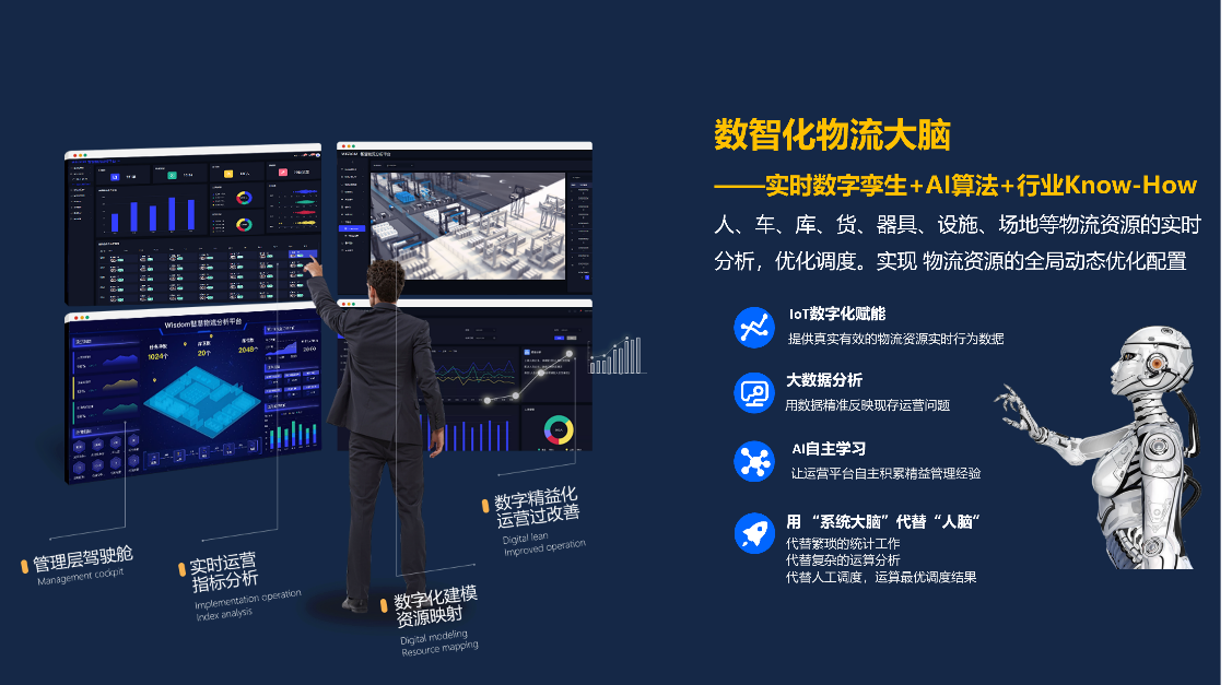 華清科盛研究開發(fā)的面向智能制造的供應(yīng)鏈精益運營管理平臺Wisdom?,具備內(nèi)部供應(yīng)鏈所有場景的全域感知(包括位置感知、重量感知、數(shù)量感知、任務(wù)感知、對象感知、身份感知等一系列數(shù)據(jù)的采集和網(wǎng)絡(luò)傳輸技術(shù))和全域資源效率分析優(yōu)化功能,給各種供應(yīng)鏈資源賦能(人員、貨架、叉車、揀選車、AGV、輸送線、物流容器等),智慧化統(tǒng)籌場域供應(yīng)鏈資源配給,智能化的指揮調(diào)度現(xiàn)場包括人員、傳統(tǒng)設(shè)施和自動化設(shè)施等所有資源,代替現(xiàn)場人員完成思考、判斷、指引、防錯等一系列執(zhí)行層事務(wù),實現(xiàn)“不依賴人”并且可以“任意供應(yīng)鏈崗位自由調(diào)度”的“萬能工”操作模式,并結(jié)合對自動化設(shè)施的調(diào)度實現(xiàn)“人機混合自動化”模式,以及多場域的供應(yīng)鏈資源共享調(diào)度的模式,實現(xiàn)場域內(nèi)供應(yīng)鏈資源的低冗余投入,達(dá)到降本增效的目的。