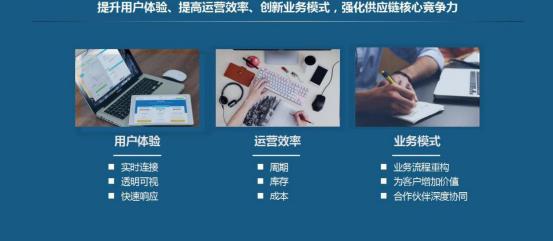 入庫、貨運(yùn)、清關(guān)、驗(yàn)收貫通。并通過 B2B 模式拉通到客戶系統(tǒng) ,實(shí)現(xiàn)客戶需求到訂 單交付的端到端貫通