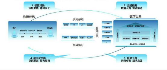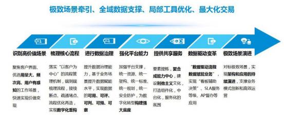 在如何開展數(shù)字化轉(zhuǎn)型方面 ,我們沉淀了數(shù)字化轉(zhuǎn)型的方法論 ,我們總結(jié)為四句話 , 極致場(chǎng)景牽引、全域數(shù)據(jù)支撐、局部工具優(yōu)化、實(shí)現(xiàn)最大化交易。這套方法論在所有業(yè)