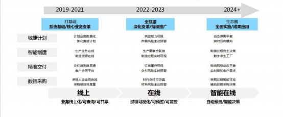 數(shù)字化轉(zhuǎn)型中 ,最困擾我們的就是路徑是什么 ,我們通過大量的研討和思考 ,對(duì)比 業(yè)界最優(yōu)方案后 ,思考出針對(duì)供應(yīng)鏈的 ROADMAP ,在這個(gè)路徑中 ,我們關(guān)注每個(gè)模 塊都有路徑 ,數(shù)字化轉(zhuǎn)型過程可以不同步 ,但目標(biāo)是一致的。