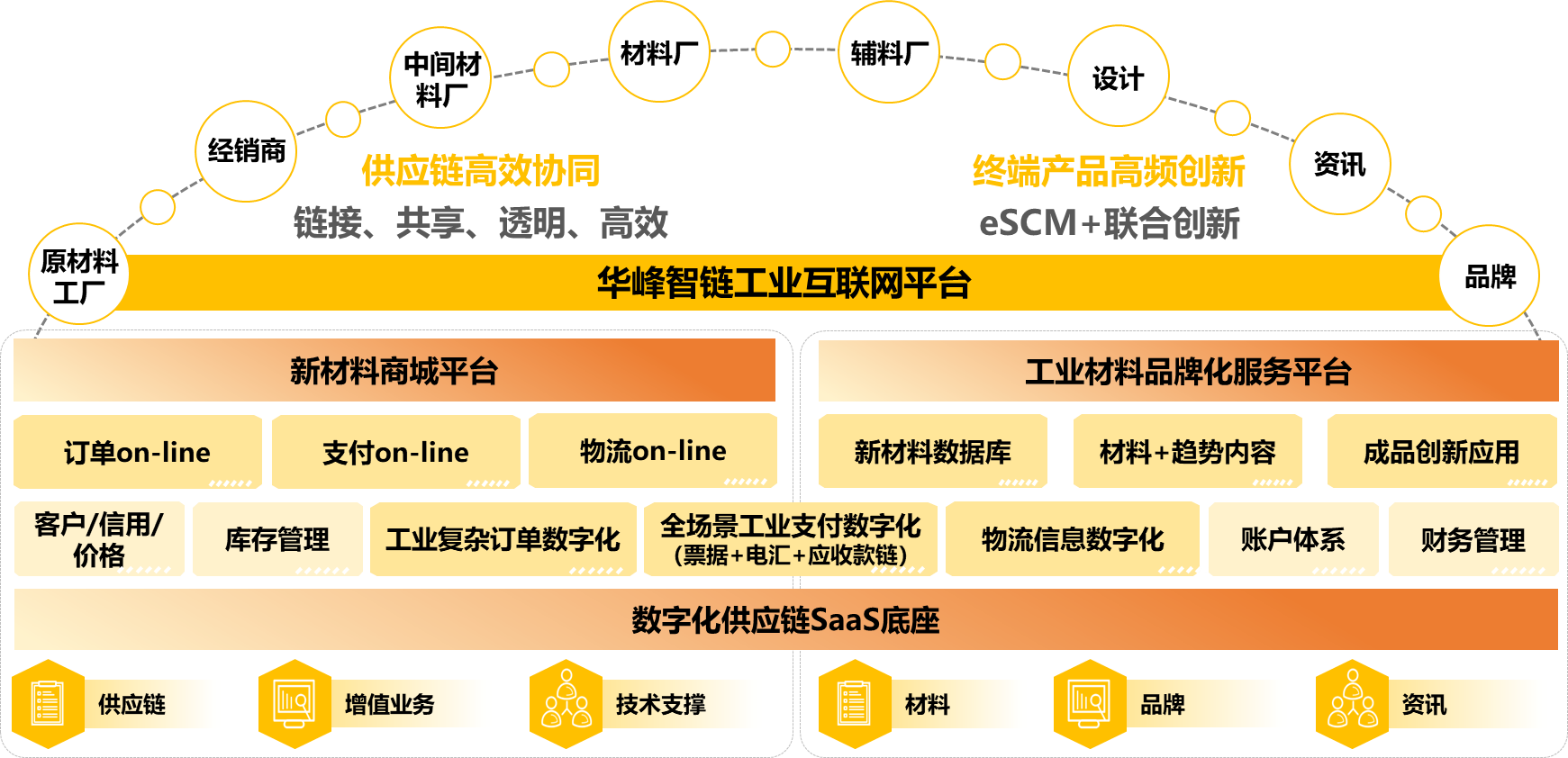 ①業(yè)務(wù)架構(gòu):圍繞供應(yīng)鏈運(yùn)營要素,華峰智鏈為華峰集團(tuán)設(shè)計并打造數(shù)字化供應(yīng)鏈SaaS底座,實(shí)現(xiàn)工業(yè)復(fù)雜訂單數(shù)字化、全場景工業(yè)支付數(shù)字化(票據(jù)支付+大額電匯支付+應(yīng)收款鏈支付)、物流信息數(shù)字化、客戶/信用/價格管理、庫存管理、賬戶體系管理、財務(wù)管理等功能;在強(qiáng)大的SaaS底座基礎(chǔ)上搭建新材料商城平臺,支持訂單+支付+物流在線集成,賦能產(chǎn)業(yè)供應(yīng)鏈高效協(xié)同。未來,還將搭建工業(yè)材料品牌化服務(wù)平臺,搭載新材料數(shù)據(jù)庫、材料+趨勢內(nèi)容、成品創(chuàng)新應(yīng)用等模塊,賦能終端產(chǎn)品高頻創(chuàng)新。