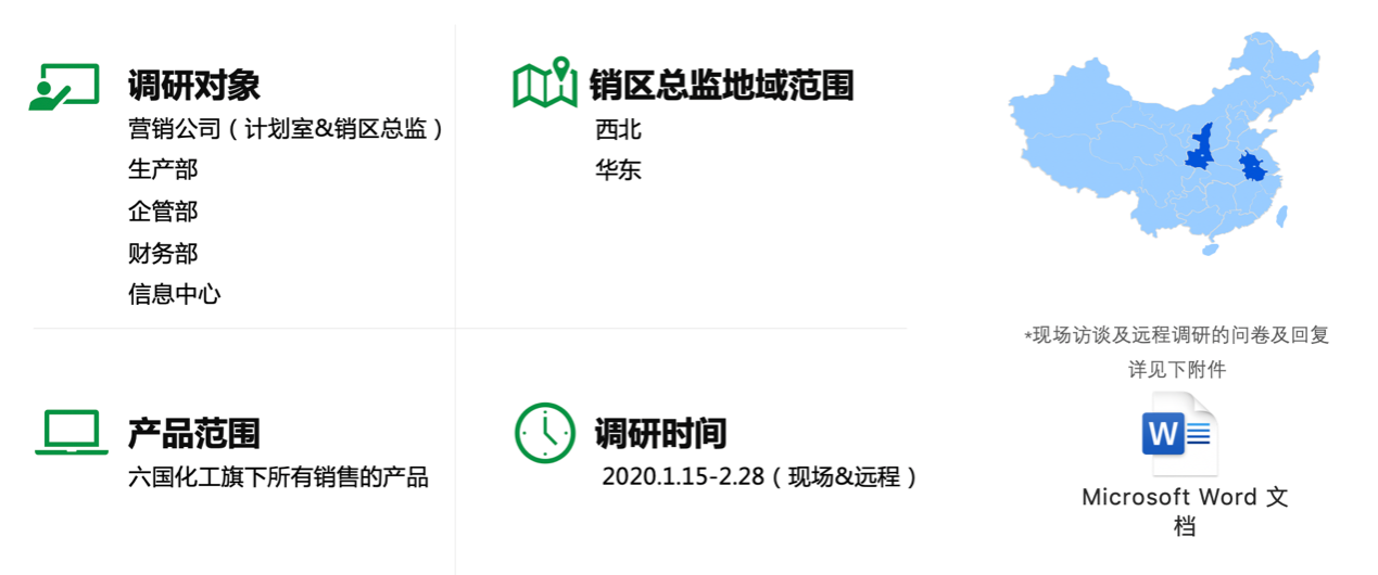 在此階段中,杉數(shù)與六國(guó)化工成立聯(lián)合項(xiàng)目組,對(duì)潛在的營(yíng)銷公司,生產(chǎn)部,企管部等多個(gè)部門的用戶進(jìn)行詳細(xì)調(diào)研,并對(duì)項(xiàng)目整體范圍進(jìn)行確認(rèn)。