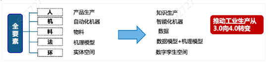工業(yè)互聯(lián)網(wǎng)平臺(tái)通過對人、機(jī)、料、法、環(huán)等全要素進(jìn)行重構(gòu),推動(dòng)工業(yè)生產(chǎn)從3.0向4.0轉(zhuǎn)變。