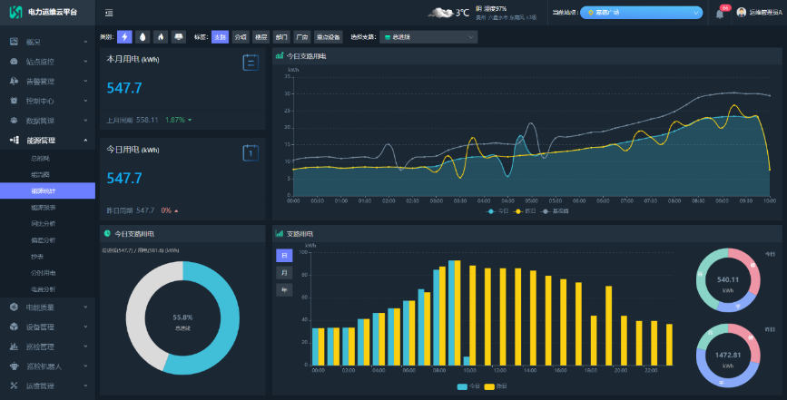 能源管理平臺可對各類用能設備中的各個主要回路的電壓、電流、功率、功率因數、電能質量等各類電氣運行參數(水和天然氣的流量和實時流量)做實時在線監測,支持通過瀏覽器在線設計接線圖等各類監控畫面,畫面定期刷新。針對生料磨電耗、煤磨電耗、窯電耗、水泥磨電耗等進行能效分析。從生產、質量、能耗、停機時長等多個方面的績效指標來綜合分析生料磨、煤磨、窯和水泥磨的運行及電耗情況,并通過預先設置好的績效指標上下限進行變色警示。通過與現有系統的融合與對接實現數據共享,能夠按照不同時間區間,從集團、分廠、產線、工序、設備、產品等多維度進行水、電、煤等能源成本的對比環比分析及價格變化曲線分析,提高企業能源的自動化和精細化管理水平,對企業的生產起促進作用,使水泥的生產數量與質量更有保證。