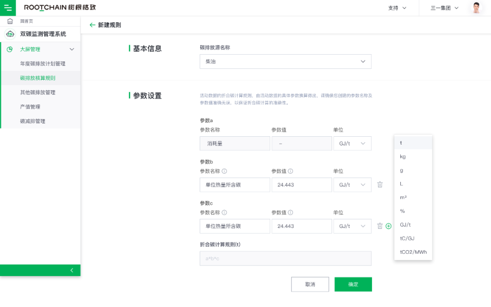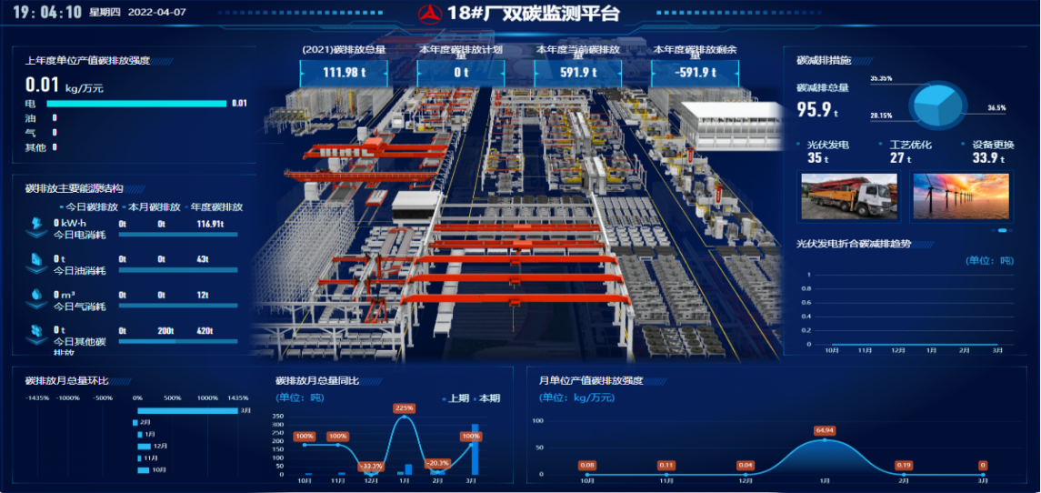 本項目以三一18號廠房申報全球燈塔工廠為契機,以18號廠房為集團試點,實現企業碳排放標準體系建立、碳排放源全面采集、碳排放精準核算以及打造18號工廠碳排放大屏,協助三一制定合理科學的“雙碳”實現路徑,同時三一的雙碳實踐經驗可輸出至工程機械裝備行業帶動其他企業的綠色低碳轉型。