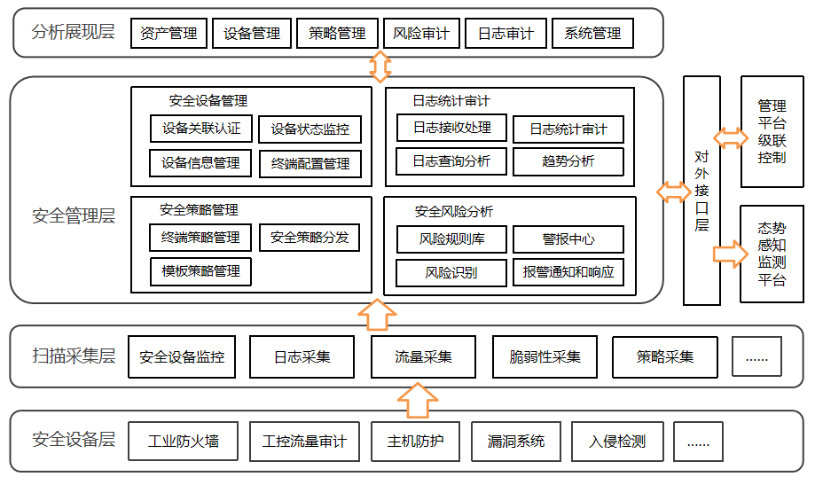 在生產管理層核心交換機上搭建一套安全集中管理中心,通過安全集中管理中心對生產網的安全設備、網絡設備、安全軟件進行集中管理和日志集中存儲分析,并通過安全集中管理中心的漏洞掃描設備定期的對生產控制系統的服務器和主機進行漏洞掃描,及時發現工控系統內部的系統漏洞并進行修復。