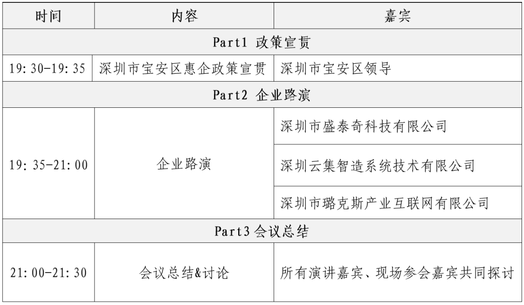 為幫助企業(yè)拓寬投融資渠道,搭建產(chǎn)融對(duì)接平臺(tái),助力企業(yè)紓困發(fā)展,工業(yè)互聯(lián)網(wǎng)產(chǎn)業(yè)聯(lián)盟(簡稱“聯(lián)盟/AII”)“我為企業(yè)辦實(shí)事”投融資沙龍將在第二十四次工作組全會(huì)期間繼續(xù)開展。本次沙龍邀請(qǐng)了深圳市寶安區(qū)領(lǐng)導(dǎo)分享惠企政策,三家有融資需求的企業(yè)將現(xiàn)場路演,高成資本、凱聯(lián)資本及AII政策法規(guī)與投融資組、需求組的專家將出席活動(dòng),為企業(yè)提供融資對(duì)接和指導(dǎo),也歡迎各成員單位積極參與。