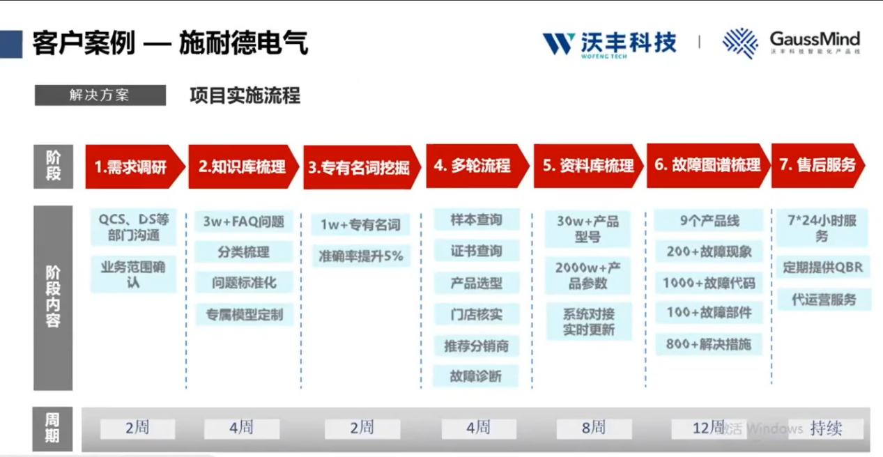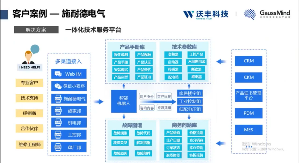 沃豐科技助力施耐德電氣在知識問答、故障排除等應用場景實現了文本機器人高解決率和高匹配率的全渠道客戶服務。沃豐科技基于自研的“原心引擎”AIGC大模型,打造“GaussMind”AI場景落地應用,針對施耐德電氣的實際業務流程,定制化推出“SG工單系統+KCS知識庫+FMEA知識圖譜”的制造業維修場景智能化解決方案。