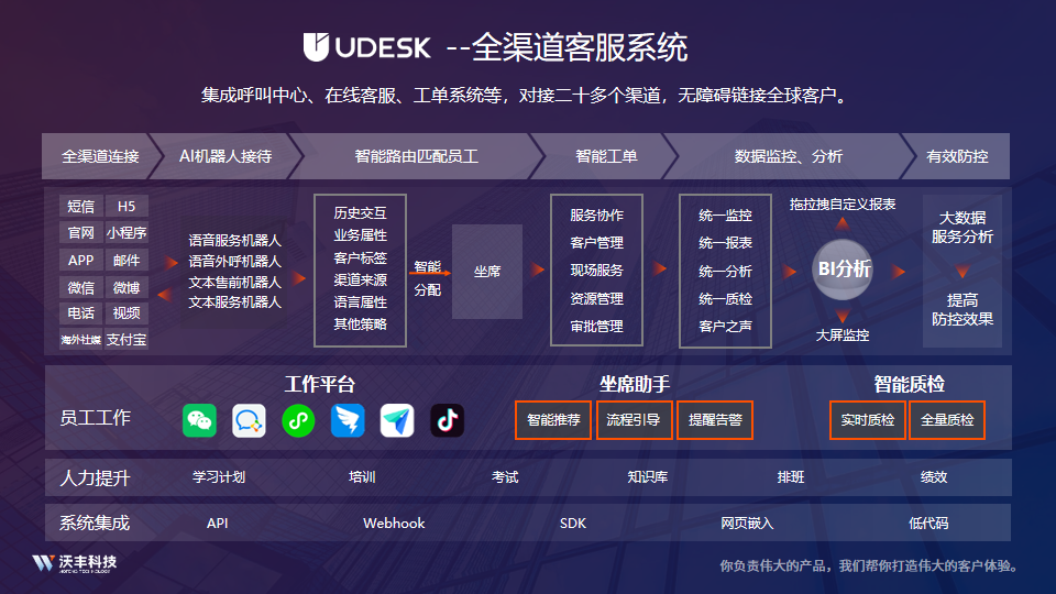 智能客服覆蓋售前、售中、售后全流程,Web H5、微信小程序、公眾號、微博、APP、企業微信等全渠道覆蓋,隨時享受智能服務。