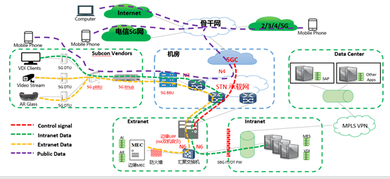 網側:以室分+宏站實現產線覆蓋,并將UPF下沉至園區,實現數據的本地處理,滿足安全要求的同時,降低業務時延。