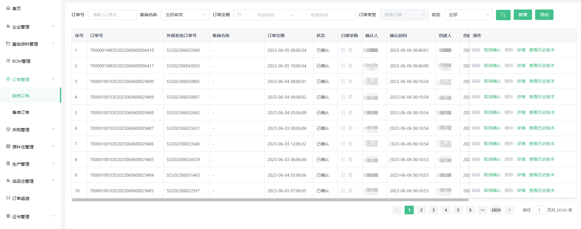 交易平臺的數據從制造企業入駐、下銷售訂單、采購訂單、原料入庫、原料領用出庫、原料損耗、成品損耗、成品入庫、成品出庫、銷售發票的數據。