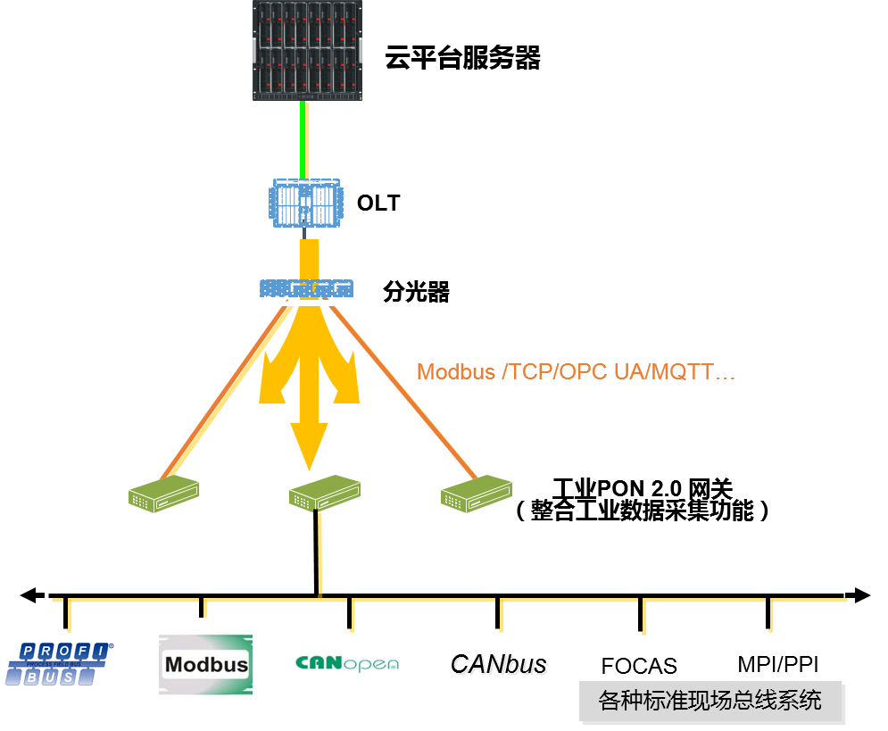 圖2-3 工業PON1.0的網絡拓撲架構示意圖